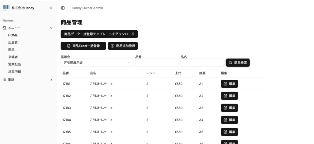 「Handy」は、展示会での予約注文の受付を、スマホでバーコードを読み取って行うことができるアプリです。
