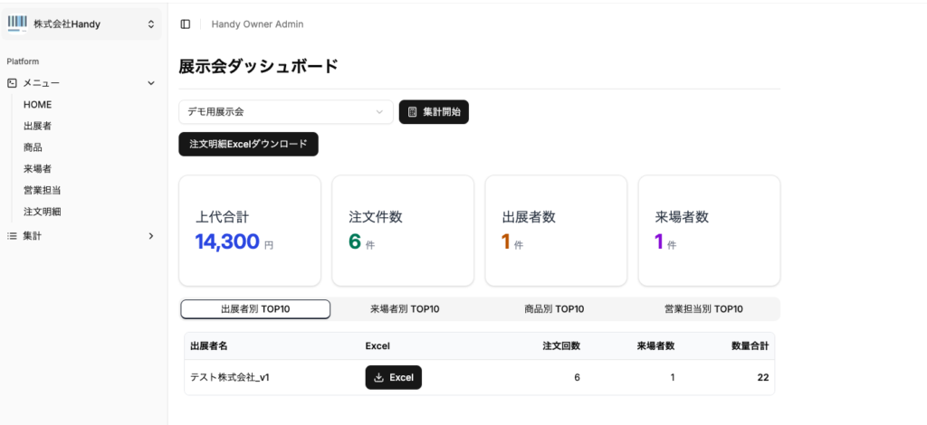 「展示会を主催する企業が同様のシステムを導入する場合と比較して、Handyで大きなコストダウンと手間の軽減を実現します。